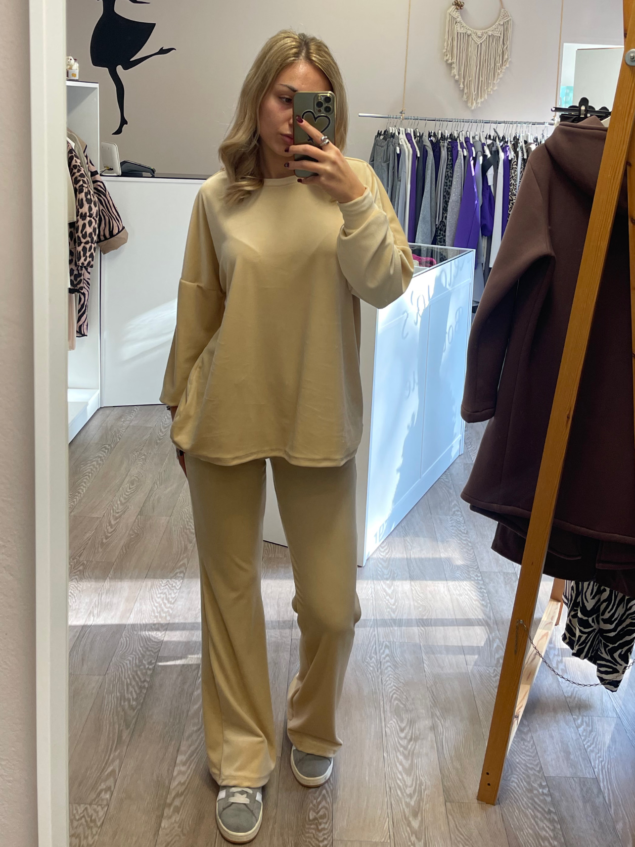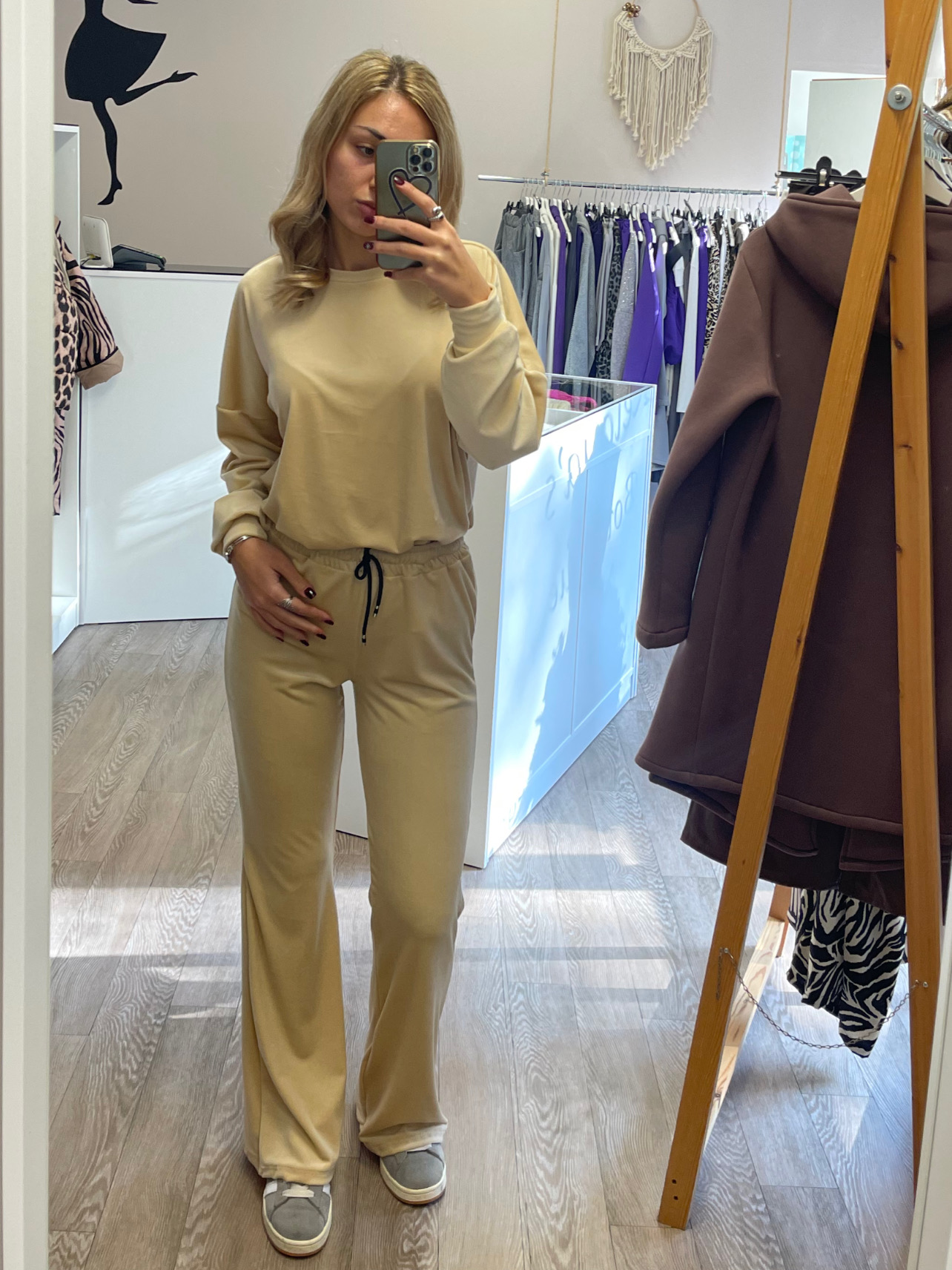 Σετ μπλούζα και φαρδιά παντελόνα με λάστιχο στη μέση και κορδόνι.