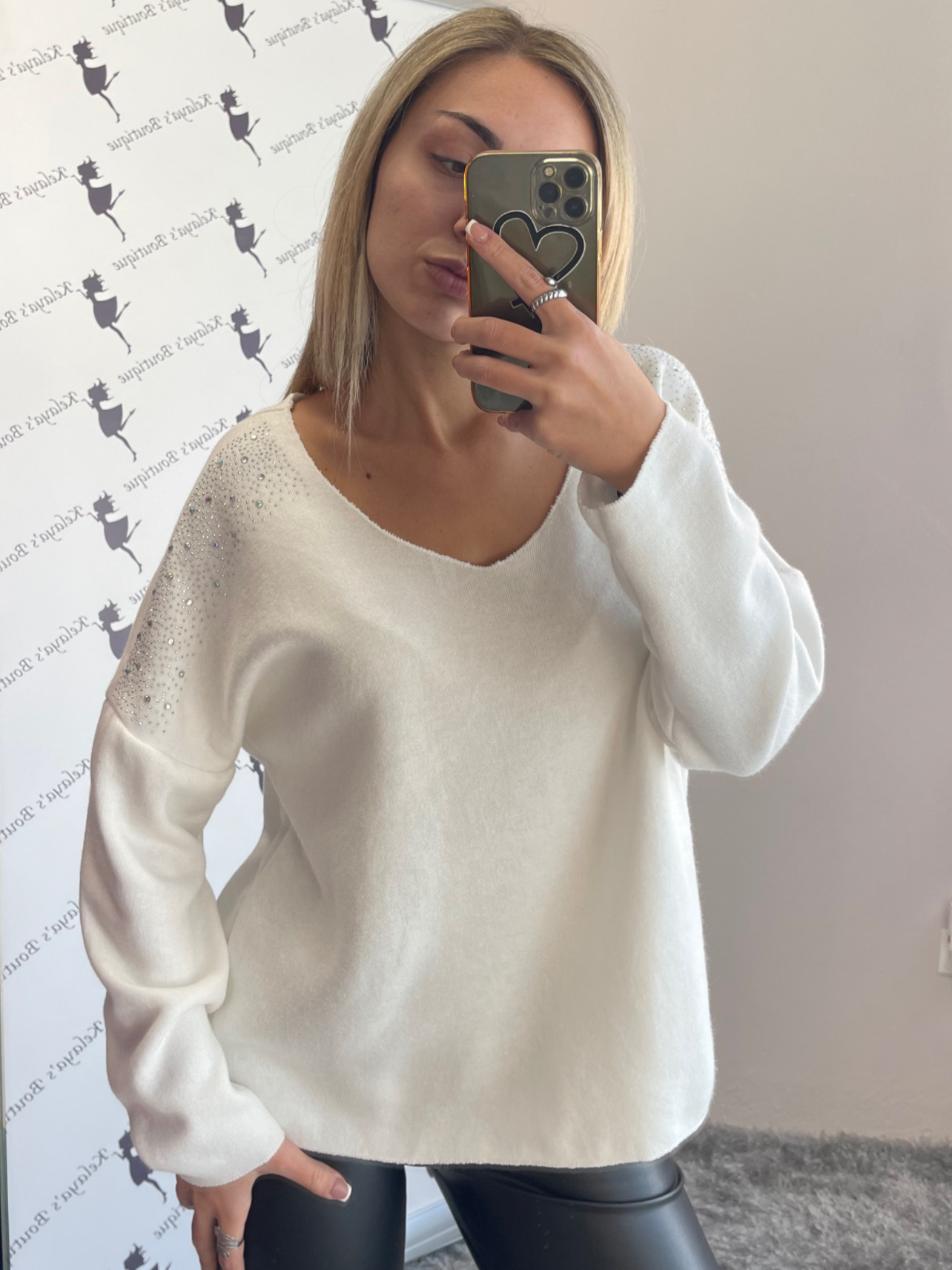 Μπλούζα λεπτή πλέξη, με strass στους ώμους και βε.