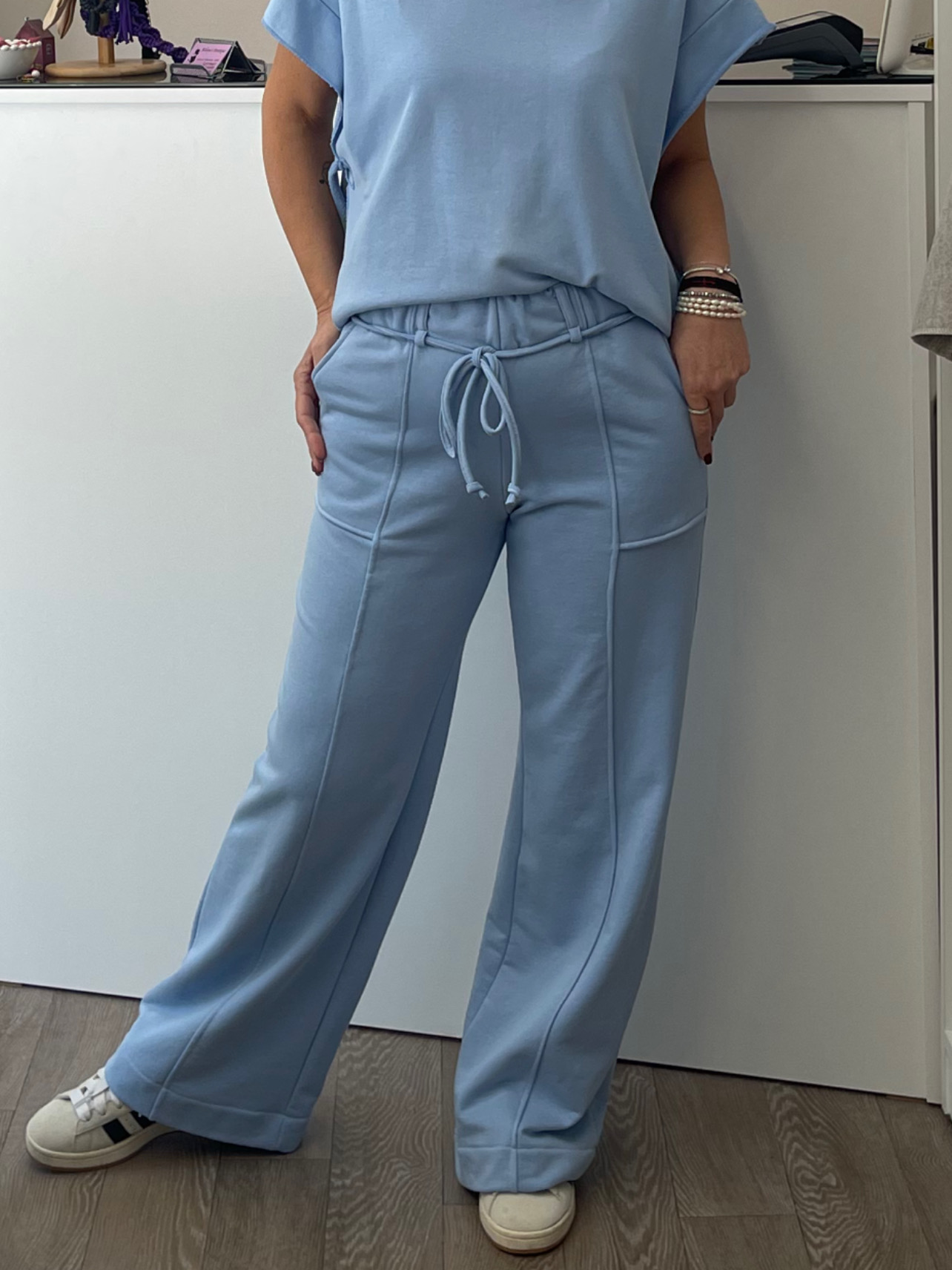 Παντελόνα baby fouter με λάστιχο στη μέση και κορδόνι.Εξωτερικές τσέπες και εξωτερική ραφή στο πόδι