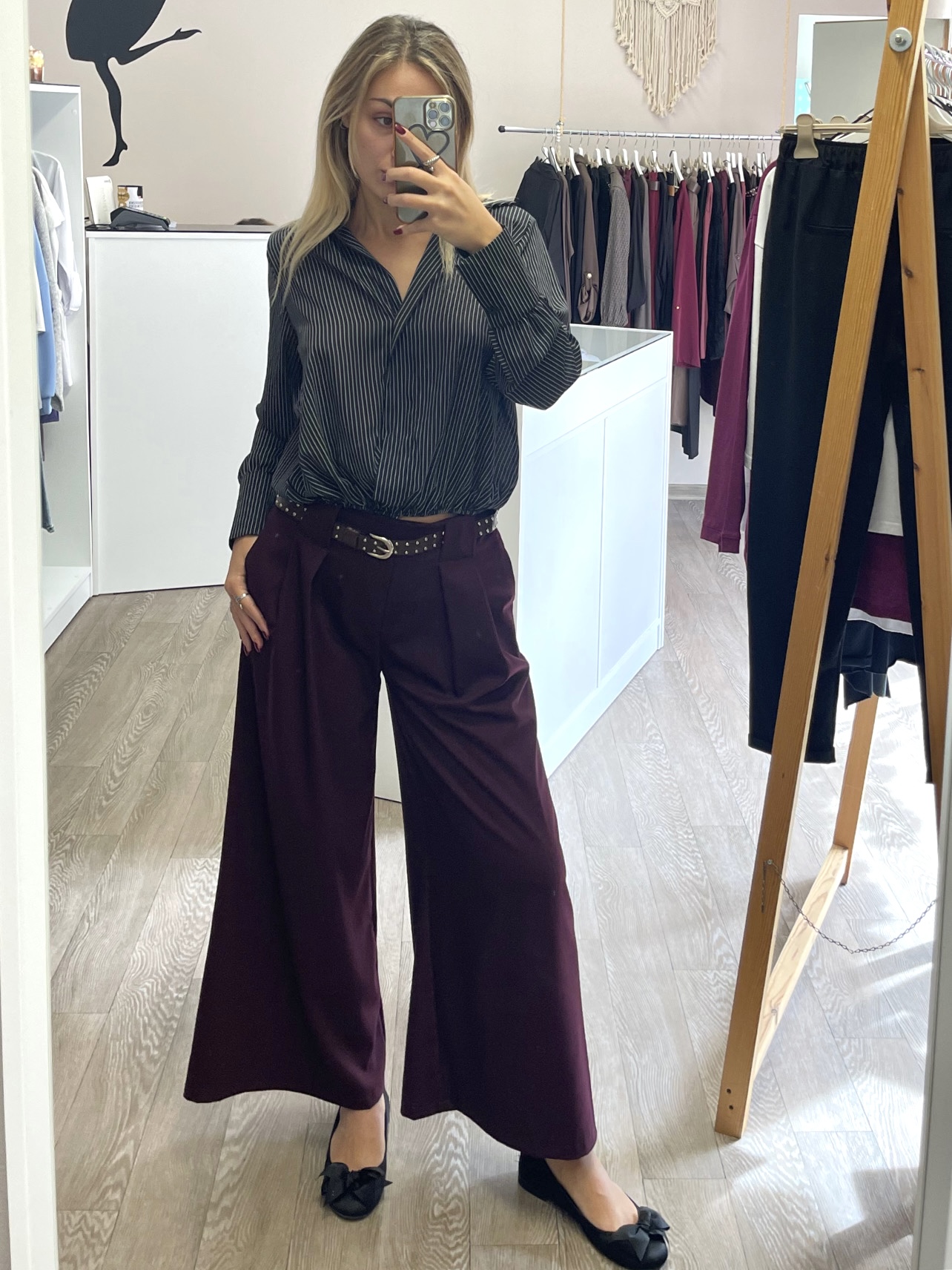Παντελόνα σταθερό ύφασμα ,λάστιχο στη μέση και ζώνη.Πιέτες μπροστά και τσέπες στα πλαϊνά