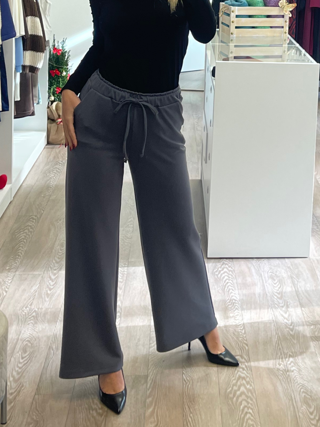 Παντελόνα Scuba ,με ελαστικότητα,λάστιχο στη μέση και κορδόνι.Τσέπες στα πλαϊνά